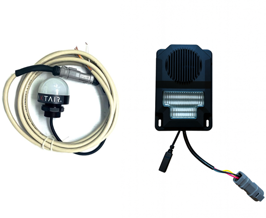 El sistema Blaxtair AHD sin pantalla debe combinarse con un dispositivo de aviso de múltiples estados, como un zumbador LED. El zumbador LED permite identificar si hay una alerta (rojo), no hay alerta (verde) o el sistema no funciona (morado).