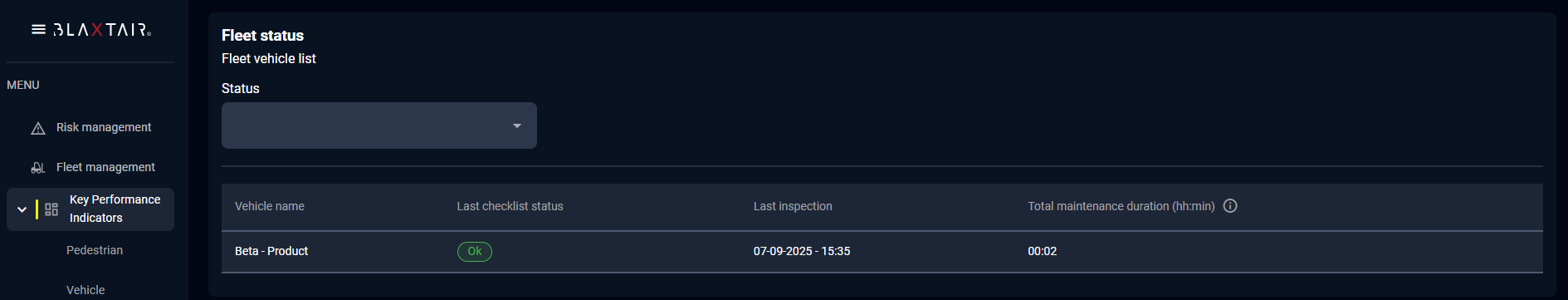 L'état de la flotte permet d'identifier l'état de chaque véhicule de la flotte (véhicule OK, véhicule avec défauts mineurs, véhicule avec défauts majeurs et nécessitant un entretien).